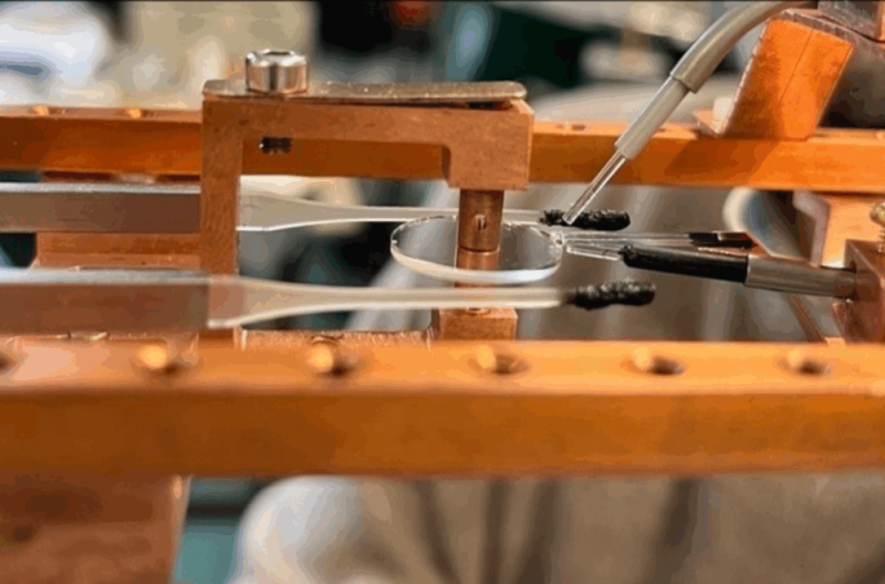 Grâce à une collaboration étroite entre chimistes, physiciennes et physiciens, le design moléculaire a été optimisé pour que les deux états (singulet et triplet) soient à la fois stables, bien différenciés en énergie, et fortement luminescents. Au Laboratoire de Physique des Solides, les scientifiques ont adapté des techniques de spectroscopie à base de résonateurs diélectriques très sensibles, développés à Kharkiv (IRE-NASU, Ukraine) au domaine des très basses températures (jusqu'à 200 mK), ce qui a permis de suivre la dynamique des états de spin (voir figure 2, panneau supérieur). Ils ont observé un contraste optique important entre des états de spin différents, une propriété moléculaire très rarement observée.